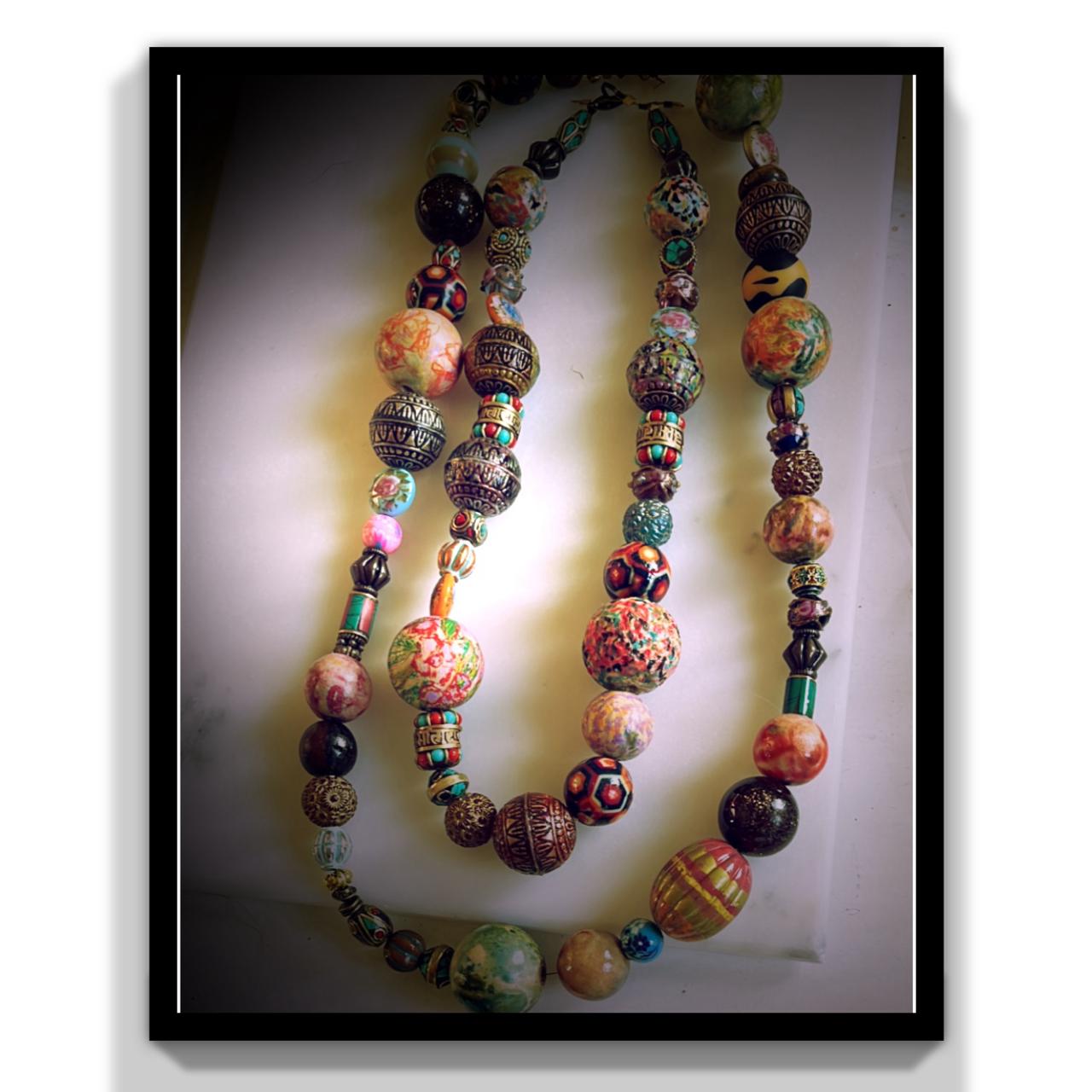 - Matériaux variés et nobles : pierres fines, cristaux, perles, coquillages, bois, résines…