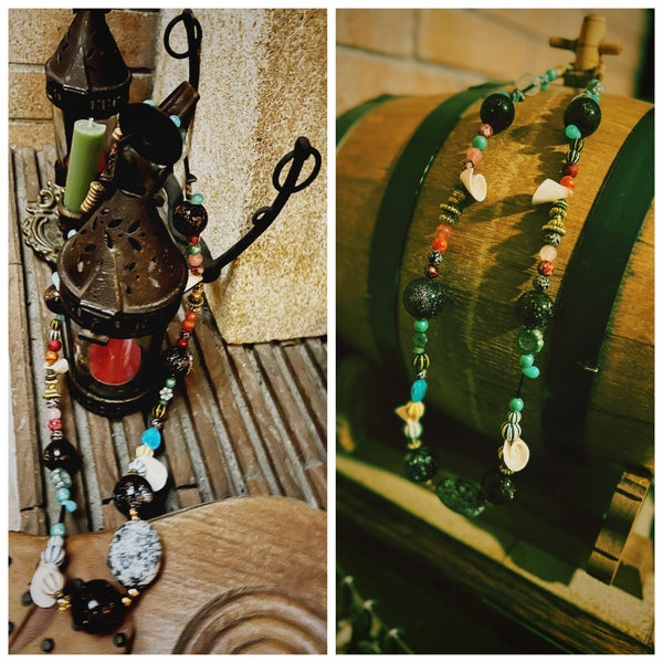 • Perles en cornaline et turquoise naturelle : elles ajoutent des accents chauds et frais, symbolisant les nuances d’un coucher de soleil à l’horizon.