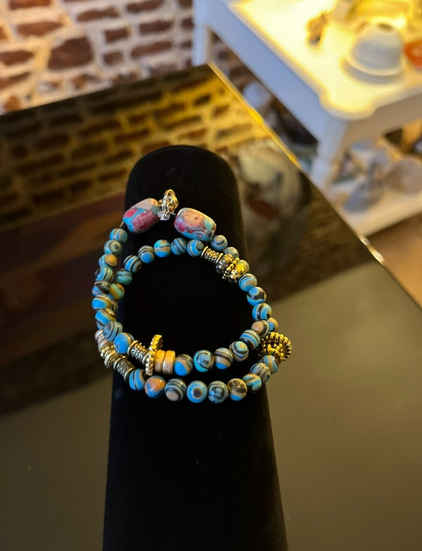 Le collier Indigo Nomade est une pièce empreinte d’histoire et d’intuition, inspirée des routes anciennes, des bijoux tribaux et des pigments naturels. Chaque perle bleu profond aux reflets mordorés évoque les traditions du désert et les nuits étoilées.